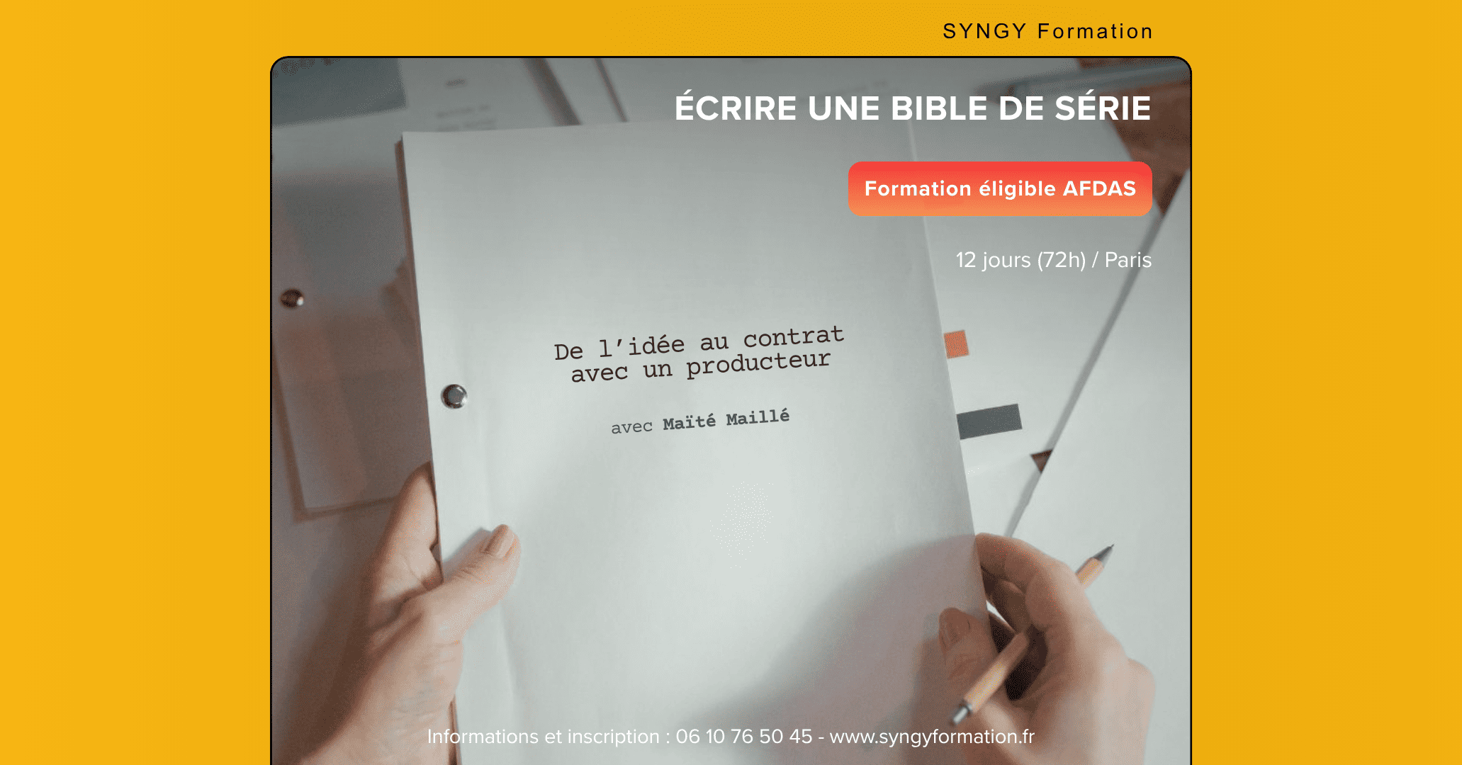 4 jours pendant trois semaines, un stage pour acquérir toutes les bases pour écrire une bible initiale indispensable pour démarcher un producteur.