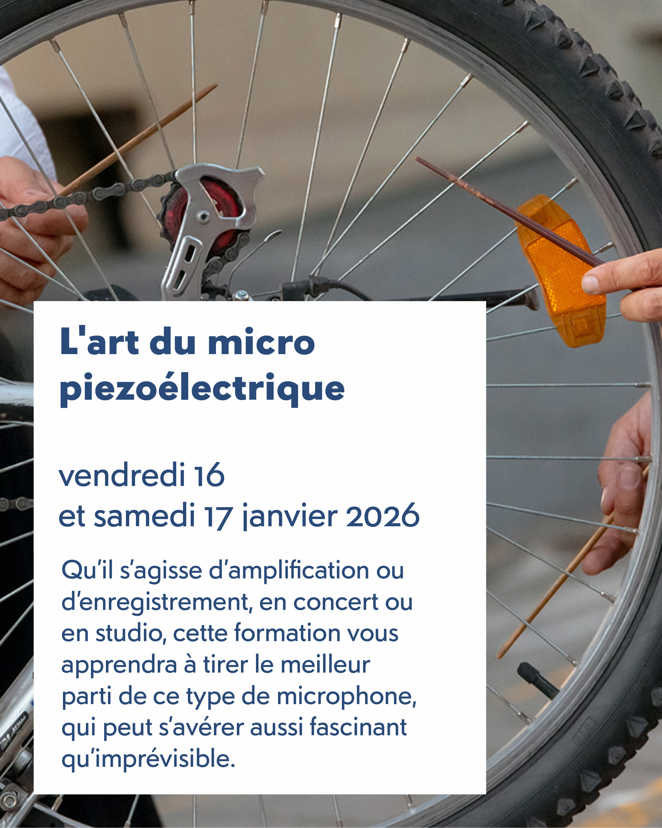 Le micro piezo est un capteur à part, peu connu du grand public, mais aux possibilités uniques et passionnantes, pourvu qu’on apprenne à l’utiliser correctement. Qu’il s’agisse d’amplification ou d’enregistrement, en concert ou en studio, cette formation vous apprendra à tirer le meilleur parti de ce type de microphone, qui peut s’avérer aussi fascinant qu’imprévisible.