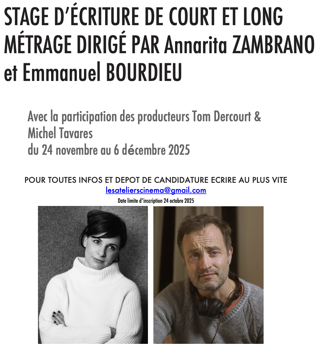Résidence écriture scénario avec Emmanuel Bourdieu et Annarita Zambrano